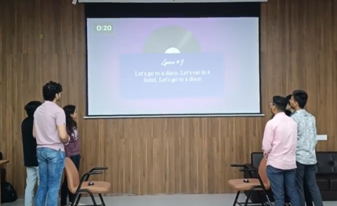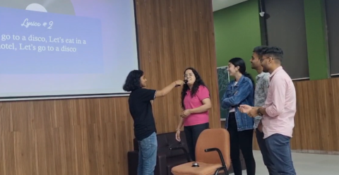 The Entertainment Club, AMEYA, hosted an exciting “Guess the Song” game during the orientation program, bringing juniors together for a fun musical showdown. Two teams competed to guess songs based on English lyrics, with plenty of suspense and laughter as participants raced to identify tunes. The twist? Losing teams faced a playful penalty, adding to the excitement. The event saw enthusiastic participation and was a highlight of the orientation.